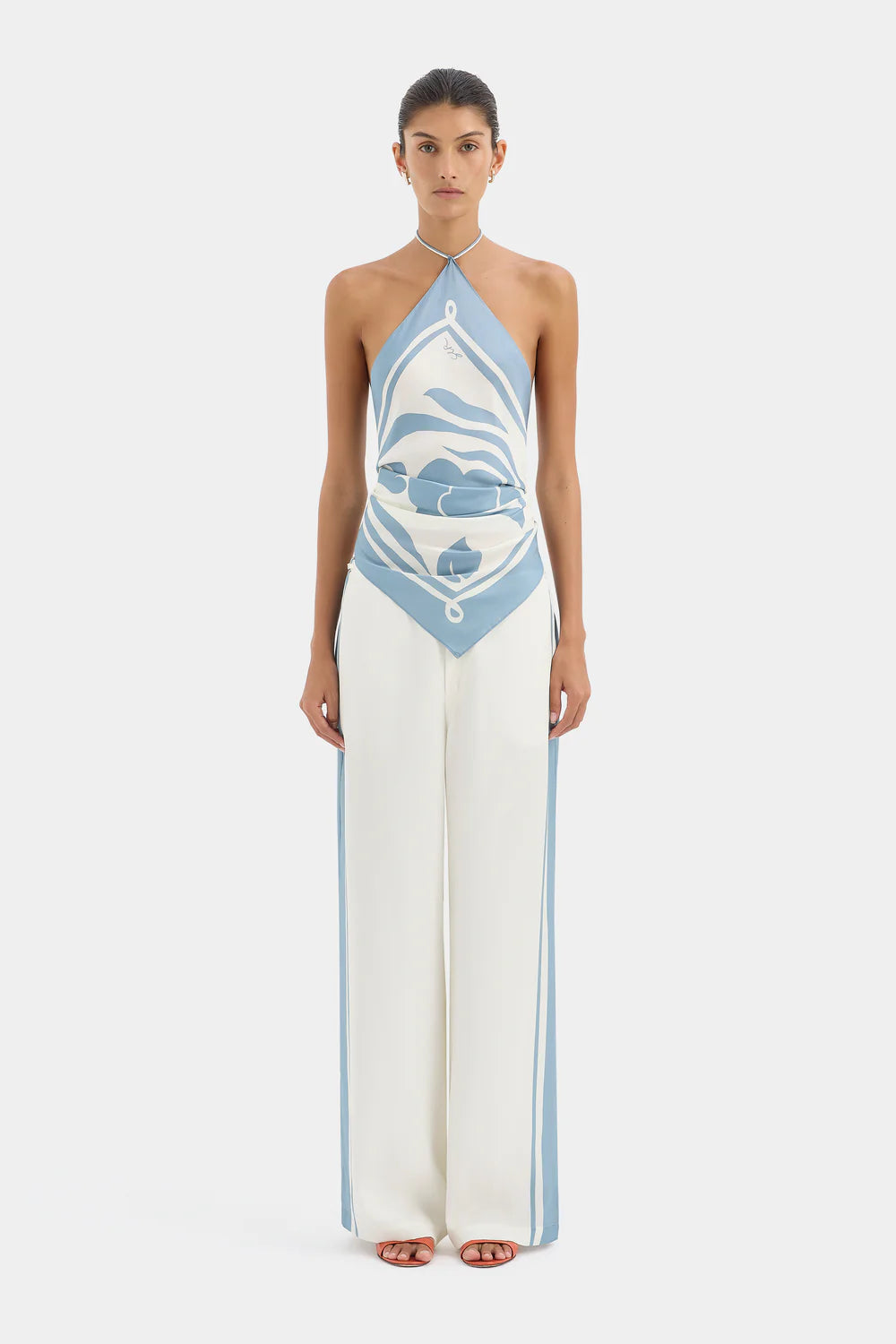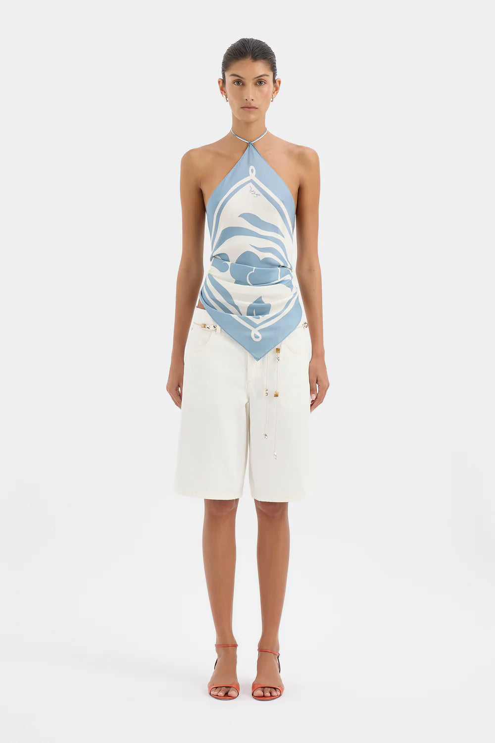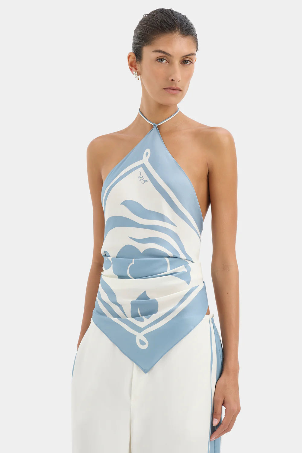 The Lilou Scarf is your summer silk essential crafted from our signature silk fabric in a SIR. exclusive Liora Blue abstract print. Featuring removable ties for multi-way styling, it is designed to effortlessly transition from an accessory to a summer cover up.